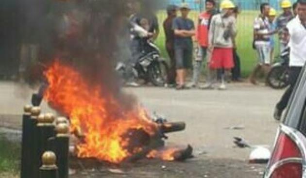 Para pelaku sempat akan dibakar oleh warga, beruntung hal itu dihentikan satpam hingga pelaku diamankan polisi. Akhirnya warga melimpahkan kekesalannya pada sepeda motor tersangka dengan membakarnya.