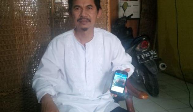 Suhdi paman Muhammad Prio Santoso yang Diduga Pembunuh Dedeuh saat menunjukan foto dalam Facebook Prio. (Dira Derby / TangerangNews)