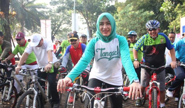 Airin dalam acara Gowes Wisata Keluarga C-MORE Tangsel (Putri Rahmawati / TangerangNews)