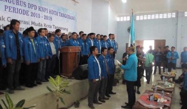 TANGERANG-Kepengurusan DPD Komite Nasional Pemuda Indonesia (KNPI) Kota Tangerang masa bakti 2015-2018 resmi dilantik, Jumat (29/1). Periode kali ini sedikit berbeda karena komposisi dan personalia kepengurusan mayoritas mengandalkan pengurus yang notabenenya adalah mereka yang masuk dalam usia muda yaitu dibawah 30 tahun.