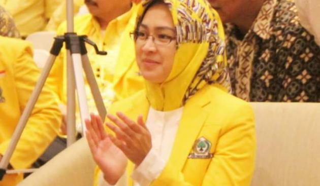 Ketua DPD Partai Golkar Kota Tangsel Airin saat menghadiri acara partai tersebut . (Dira Derby / Tangerangnews)