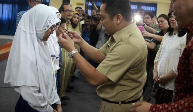 Penyerahan Kacamata kepada Siswa/Siswi Tangerang dari Alfamart bersama Wali Kota Tangerang Arief R Wismanyah di Gedung Pemkot Tangerang, Senin (2/11). (Rangga A Zuliansyah / TangerangNews)