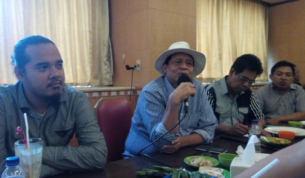 Wahidin Halim saat didampingi Ketua Pokja Wartawan Harian Tangerang Ian di Restoran Istana Nelayan. Wahidin dalam jumpa pers tersebut menganggapi pemberitaan terkait dirinya yang datangi mantan lawannya di Pilkada Gubernur Ratu Atut Chosiyah. (Rangga A Zuliansyah / Tangerangnews)