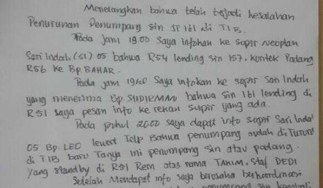 TANGERANG- Surat penyataan pimpinam sopir Lion Air yang mengakui ada kesalahan  menyebar.