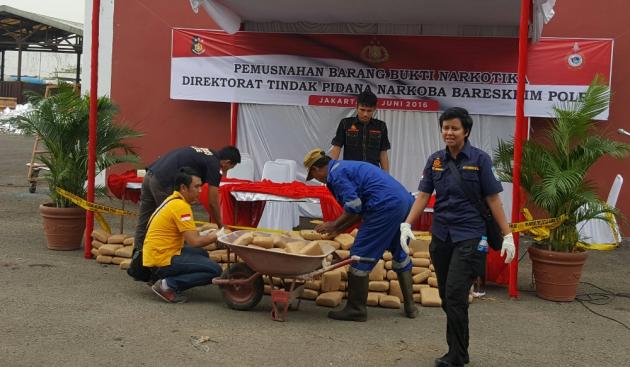 Pemusnahan dilakukan dengan cara dibakar di dalam tungku insenerator garbage plan dengan suhu tinggi oleh Kabag Humas Penerangan Umum Mabes Polri, Kombes Pol Rikwanto dan pejabat terkait. Rikwano mengatakan, ganja ini hasil sitaan dari upaya penyelundupan dan pengedaran oleh enam tersangka yani Zulfikli, 49, Winarto, 35, Dadam, 33, Arif Hidayat, 29, Abbdul Muhlis, 23, dan Sukma Wansyah, 26.