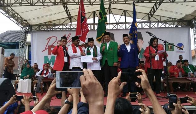 Sebelum mendaftar ke KPU Banten, pasangan Rano-Embay akan mendeklarasikan bersama tiga partai pengusung PDIP, PPP dan Nasdem, pukul 14.00 Wib, di Stadion Maulana Yusuf Ciceri, Kota Serang. Tidak kalah banyak, pasangan itu juga menghadirkan ribuan massa pendukungnya.