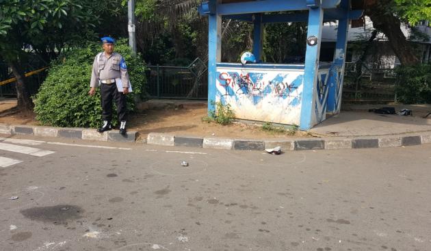 Tiga orang polisi Tangerang diserang.Tampak darah berceceran di lokasi Pospolisi Lalu Lintas Cikokol, Kota Tangerang. (@TangerangNews.com 2016 / Raden Bagus Irawan)