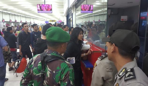 Tampak diantara mereka memukul mukul meja dan kaca ruang customer service. Hal itu membuat petugas Kepolisian dan TNI berdatangan. Sementara petugas customer service Lion Air terdiam.
