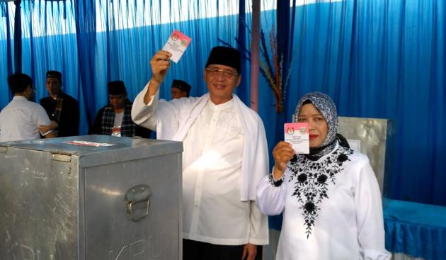 Wahidin Halim dan Istri mencoblos bersama di TPS 2 (@tangerangnews 2017 / Rangga A Zuliansyah)