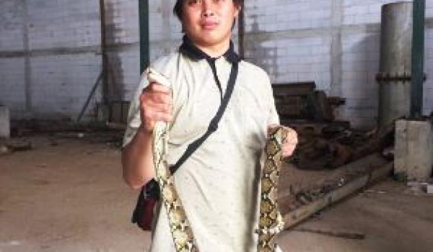 Muhammad Asdiyansyah, saat menemukan seekor ular sanca di lapak milik orang tuanya di Kampung Kadu RT 04/01, Desa Kadu, Kecamatan Curug, Rabu (12/7/2017). (@TangerangNews2017 / Mohamad Romli)