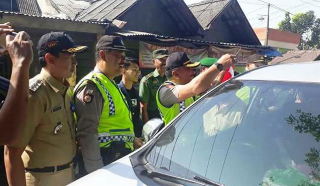 TANGERANGNEWS.com-Pengendara yang melintas didepan jalan Arya Jaya Santika, Tigaraksa, Kabupaten Tangerang, dibuat kaget ketika petugas dari kepolisian Tigaraksa, TNI dari Koramil Tigaraksa dan Satpol PP memberhentikan kendaraan yang melintas di lokasi tersebut, Selasa (1/8/2017).