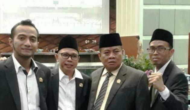 Wakil Ketua DPRD Tangsel Taufik MA, bersama Ketua Komisi 1 DPRD Tangsel Ahmad Syawqi dan anggota DPRD lainnya seusai Rapat Paripurna DPRD Tangsel, Senin (10/7/2017). (@TangerangNews2017 / Yudi Adiyatna)