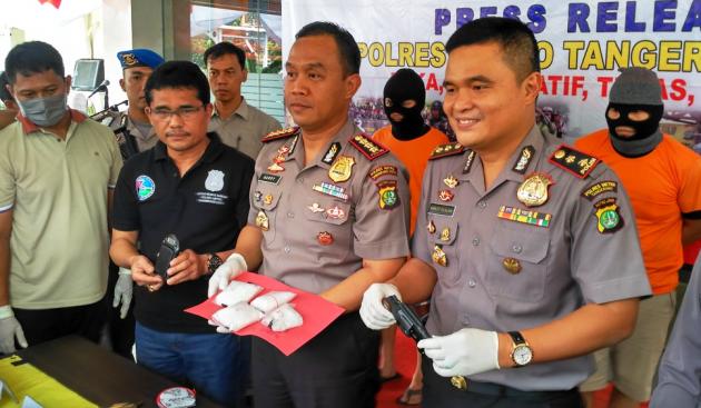 Kapolres Metro Tangerang Kombes Pol Harry Kurniawan saat menunjukan barang bukti narkoba jenis sabu, Senin (07/8/2017). (@TangerangNews2017 / Rangga A Zuliansyah)