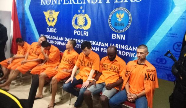 Sembilan tersangka yang berhasil diamankan diantaranya adalah, AWM dan NCC ditangkap setelah menelan kapsul berisi sabu sebanyak 97 kapsul dengan berat total 1.102 gram.  Namun NCC tewas akibat sisa kapsul sabu yang ada ditubuh itu pecah.