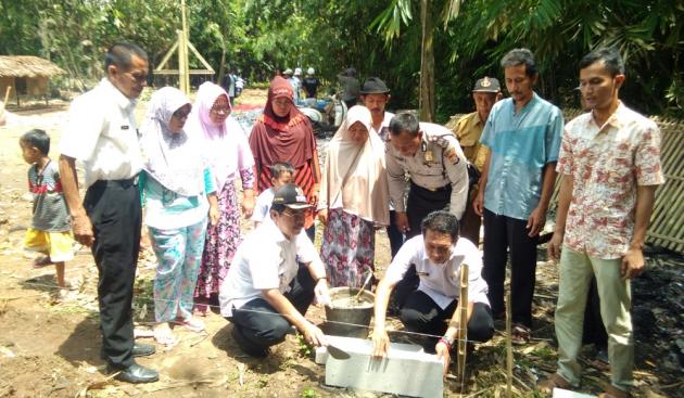 TANGERANGNEWS.com-Suma, 30, warga Kampung Sentul RT 03/03, Desa Sentul, Balaraja akhirnya bisa memiliki rumah layak huni. Wajahnya berseri-seri saat Camat Balaraja, Mas Yoyon Suryana melakukan peletakan batu pertama pembangunan rumahnya, Rabu (1/11/2017).