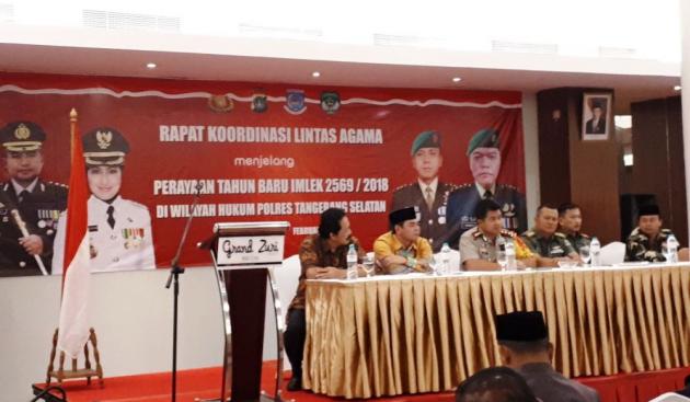 Tak ketinggalan, guna menciptakan rasa aman dan nyaman Kapolres Tangsel AKBP Fadli Widiyanto, Kamis (15/2/2019) menggelar kegiatan rapat kordinasi bersama para pemuka agama, perwakilan wihara , pemerintah serta aparat TNI di Hotel Grand Zuri, BSD Tangsel.