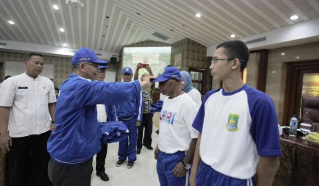 Pejabat Sementara (Pjs) Wali Kota Tangerang M Yusuf saat melepas 186 atlet dari kalangan pelajar pada ajang Pekan Olahraga Pelajar Daerah (Popda) IX Tingkat Provinsi Banten, di Puspemkot Tangerang, Jumat (4/5/2018). (@TangerangNews/2018 / Achmad Irfan Fauzi)
