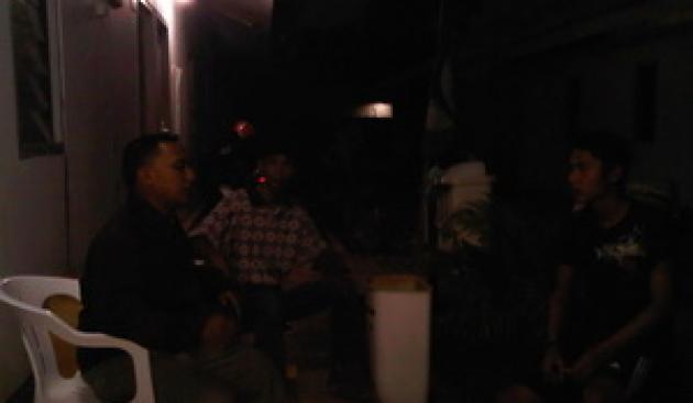 Pengungsi Situ Gintung di Kertamukti II, tampak sedang berbincang-bincang di depan pengungsian mereka. (dens / dira)