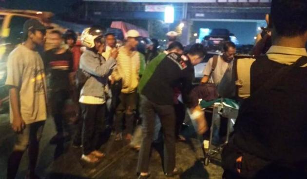 Terlihat warga menyelamatkan korban yang mengalami Kecelakaan lalulintas di Jalan Jenderal Sudirman, Cikokol, Kota Tangerang. (@TangerangNews / Achmad Irfan Fauzi )
