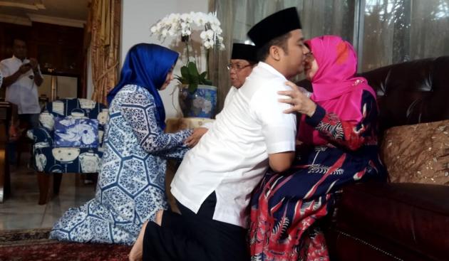 TANGERANGNEWS.com-Calon Wali Kota Tangerang Arief R Wismansyah melakukan sungkem dengan kedua orangtuanya sebelum melaksanakan pencoblosan Pilkada Kota Tangerang.