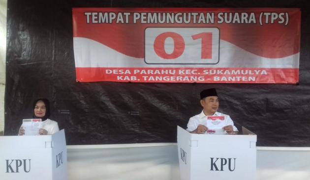 TANGERANGNEWS.com-Calon Wakil Bupati Tangerang Mad Romli menggunakan hak pilihnya di TPS 01, Desa Parahu, Kecamatan Sukamulya, Rabu (27/6/2018).