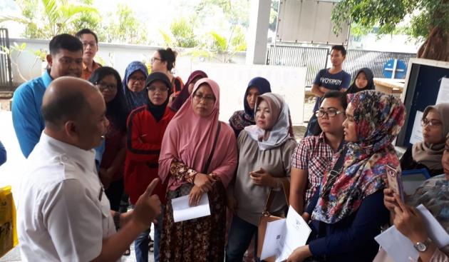 Taryono yang datang sekitar pukul 14.00 WIab tersebut langsung menghampiri puluhan Ibu-ibu orangtua murid yang telah menunggu di selasar halaman SMPN 8 Tangsel tersebut.