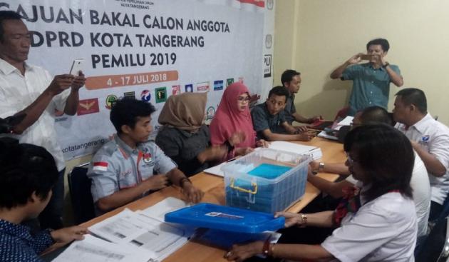 Suasana pendaftaran bakal calon legislatif (Bacaleg) untuk Pemilihan Legislatif (Pileg) 2019 dikantor KPU Kota Tangerang, Senin (16/7/2018). (@TangerangNews / Achmad Irfan Fauzi)