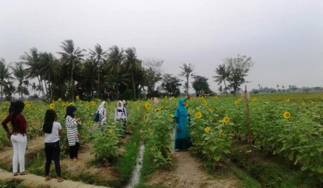 TANGERANGNEWS.com-Seperti layaknya destinasi wisata, kebun bunga matahari milik Hending, 40, di Kampung Pisangan, Desa Kayu Agung, Kecamatan Sepatan, Kabupaten Tangerang, kini ramai dikunjungi warga.