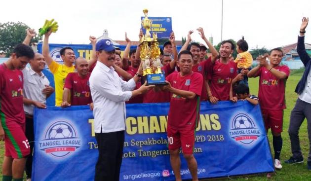 TANGERANGNEWS.com-Kejuaraan Sepak bola antar Organisasi Perangkat Daerah (OPD) Tangerang Selatan selesai digelar. Dalam laga final kompetisi tersebut, tim kesebelasan Kecamatan Serpong Utara (Serut) berhasil meraih tropi juara usai mengalahkan lawannya kesebelasan Dinas Penanaman Modal dan Pelayanan Terpadu Satu Pintu (DPMPTSP) Tangsel,