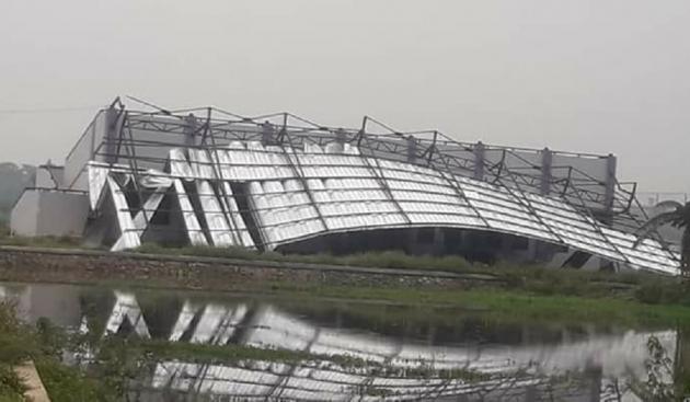 Stadion mini yang dibangun tahun 2017 itu diduga ambruk karena diterpa angin kencang.