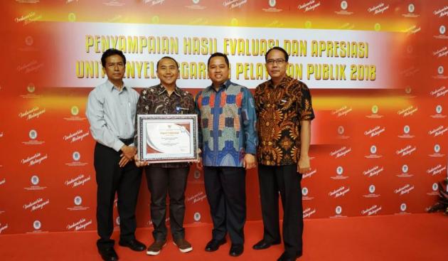 Penghargaan tersebut diberikan dalam kategori Penyelenggaraan Pelayanan Publik tingkat Nasional 2018 dengan penilaian 'Sangat Baik'.
