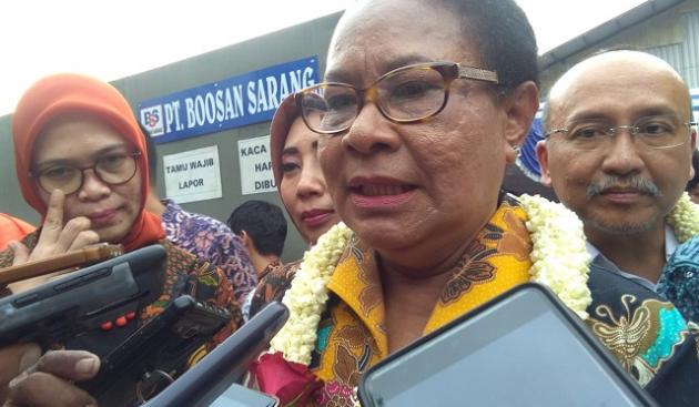 Menteri Pemberdayaan Perempuan dan Perlindungan Anak (KPPA) Yohana Susana Yembise pun menyambangi ratusan buruh PT Boosang Sarang di Jalan Serang Km 16.8, Desa Talaga, Cikupa, Kabupaten Tangerang, Selasa (27/11/2018).