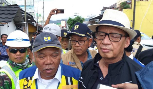 TANGERANGNEWS.com-Gubernur Banten Wahidin Halim bersama dengan Menteri Pekerjaan Umum Basuki Hadimulyono dan Bupati Pandeglang Irna Narulita mengunjungi langsung Puskesmas Carita tempat evakuasi jenazah korban Tsunami di sekitaran pantai Carita, Pandeglang, Minggu (23/12/2018).