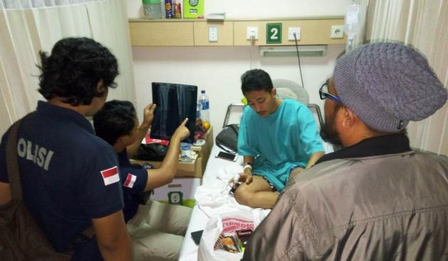 Ade Raihan (berpakaian hijau) yang tertembak senjata api rakitan hasil buatannya sendiri mendapatkan perawatan medis di Rumah Sakit Sari Asih Ciledug, Kota Tangerang. (TangerangNews/2018 / Yudi Adiyatna)
