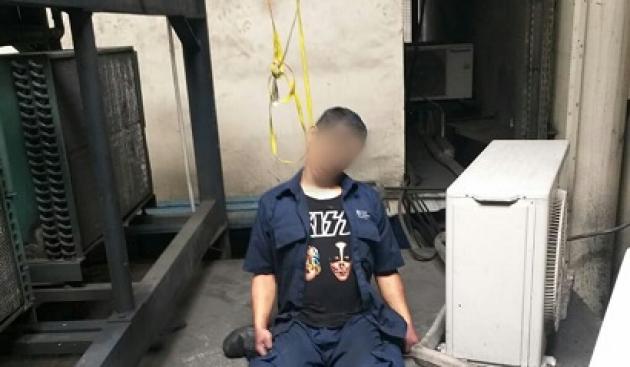 Tampak seorang karyawan PT Jas ditemukan tewas gantung diri di area mesin pendingin gudang import PT JAS, Bandara Soekarno-Hatta, Tangerang, Kamis (24/1/2019). (@TangerangNews/2019 / Achmad Irfan Fauzi )