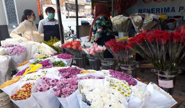 Sambut Valentine, Kaum Milenial Berbondong-bondong Borong Bunga di Pasar Lama
