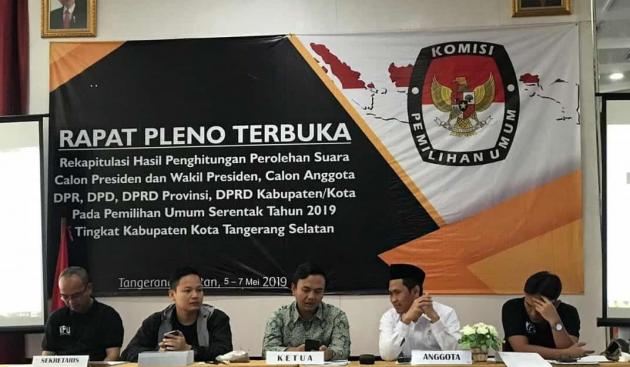 TANGERANGNEWS.com-KPU Kota Tangsel telah selesai merekapitulasi hasil perolehan suara 3 dari 7 Kecamatan di Kota Tangsel, Senin (6/5/2019).