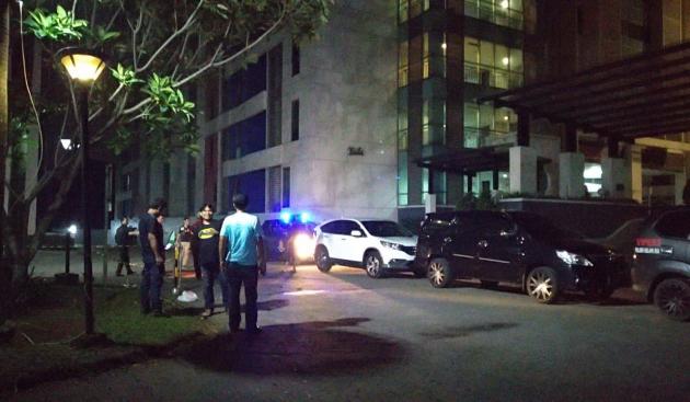 Polisi mendatangi tempat kejadian wanita ditemukan tewas di apartemen the Habitat, Kelurahan Bencongan Indah, Kecamatan Kelapa Dua, Kabupaten Tangerang, Sabtu (11/5/2019) malam. (TangerangNews/2019 / Mohamad Romli)