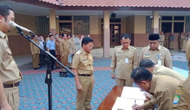 TANGERANGNEWS.com-Wali Kota Tangerang Arief R Wismansyah melantik Tatang Sutisna sebagai Penjabat Sekretaris Daerah (Sekda) Kota Tangerang, saat apel pagi di Plaza Pusat Pemerintahan Kota Tangerang, Senin (8/7/2019).