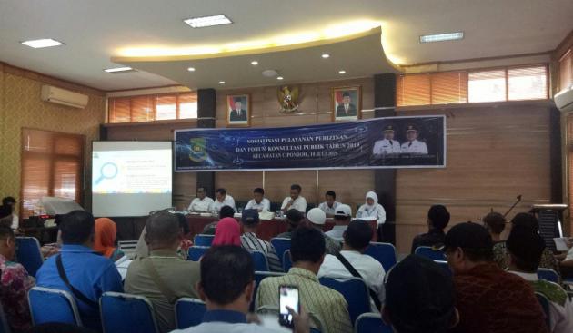 TANGERANGNEWS.com-Dinas Penanaman Modal dan Pelayanan Terpadu Satu Pintu (DPMPTSP) Kota Tangerang menggelar sosialisasi pelayanan perizinan dan forum konsultasi publik di Aula Kantor Kecamatan Cipondoh, Kota Tangerang, Rabu (10/7/2019).