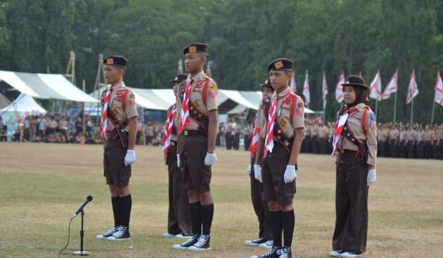 TANGERANGNEWS.com-Empat anggota Gerakan Pramuka golongan Penggalang Kabupaten Tangerang menjadi petugas Apel Besar Hari Ulang Tahun (HUT) Pramuka ke-58 tingkat nasional di Bumi Perkemahan Cibubur, Jakarta, Rabu (14/8/2019).