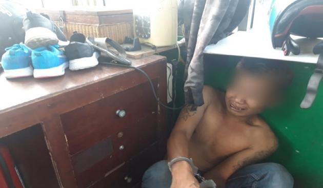 TANGERANGNEWS.com—Suheri, seorang pencuri tertangkap basah saat menggasak tiga pasang sepatu milik jemaah di pelataran Masjid Raya Al-Azhom, Kota Tangerang, Rabu (21/8/2019). Pencuri ini telah diamankan di Polsek Tangerang.