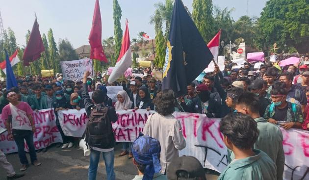 Aksi mahasiswa di Cilegon berlangsung tertib, mereka hanya orasi-orasi untuk menyuarakan tuntutan. Mereka ingin perwakilan anggota DPRD menemui mereka untuk mendengarkan aspirasi yang disampaikan.(RMI/HRU)