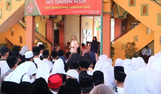 Dalam pidatonya, Airin berbicara terkait wacananya tentang dana hibah bagi pesantren.