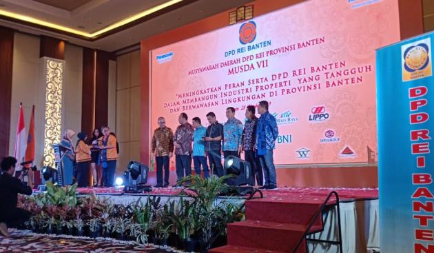 Tampak hadir di Musda REI Banten Ketua REI Pusat Soelaiman Soemawinata, Ketua DPRD Banten Andra Soni dan perwakilan DPD REI se-Indoensia.(RAZ/HRU)