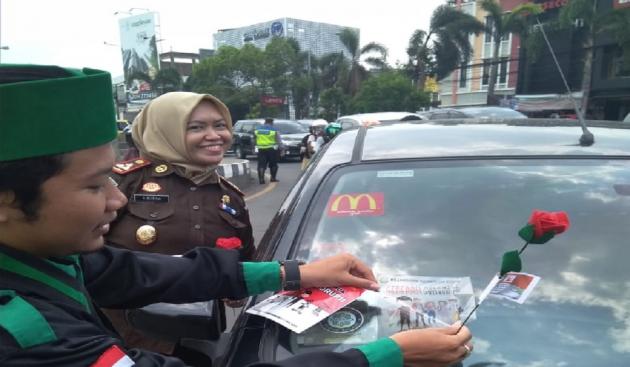"Kemudian ada dialog dan ditutup dengan acara pemberian bunga kepada masyarakat bahwa hari ini ada kegiatan seperti ini, ada peringatan hari anti korupsi," kata dia.