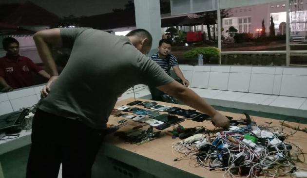 Dalam hasil penggeledahan ini, petugas hanya menemukan sejumlah ponsel, kabel charger ponsel, kompor elektrik, bahkan senjata tajam.