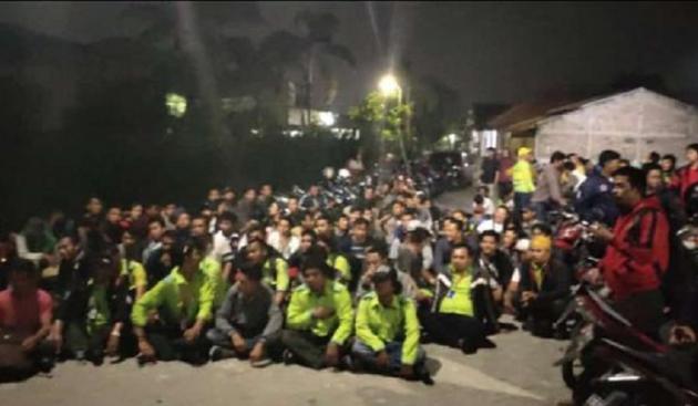 Para pekerja yang tergabung dalam Federasi Serikat Pekerja Metal Indonesia (FSPMI) ini sudah menjalankan aksinya sejak dini hari.