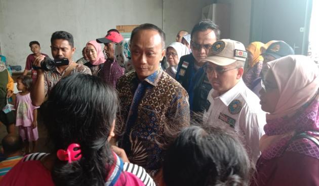 Zudan yang tiba di lokasi pengungsian sekitar pukul 12.00 WIB disambut langsung oleh Kepala Disdukcapil Kabupaten Tangerang Syafrudin dan pihak Kecamatan Teluknaga.