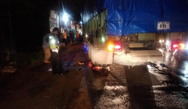 TANGERANGNEWS.com-Seorang pengendara sepeda motor Wahyu Andriansyah tewas terlindas truk muatan kedelai setelah gagal menyalip truk. Korban terjatuh setelah menghantam lubang hingga akhirnya terlindas ban truk.